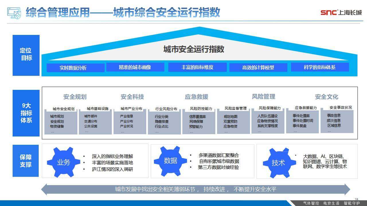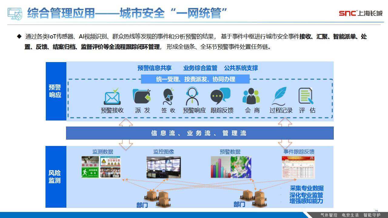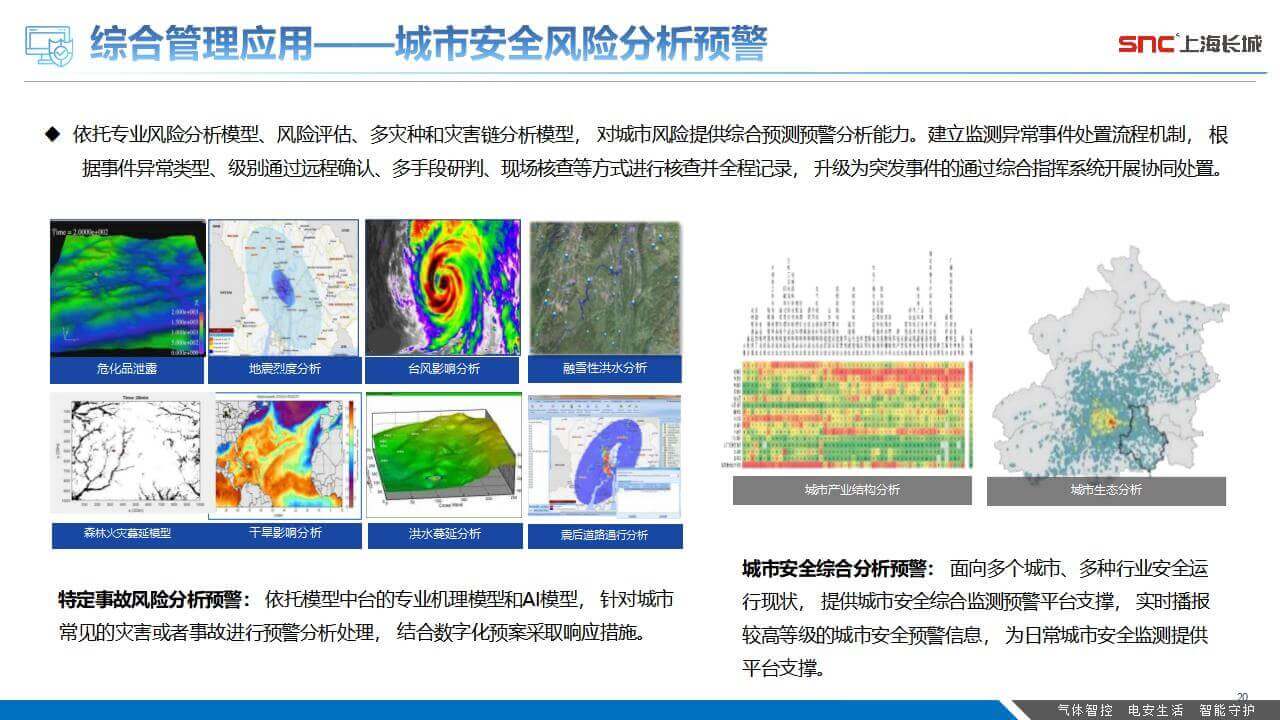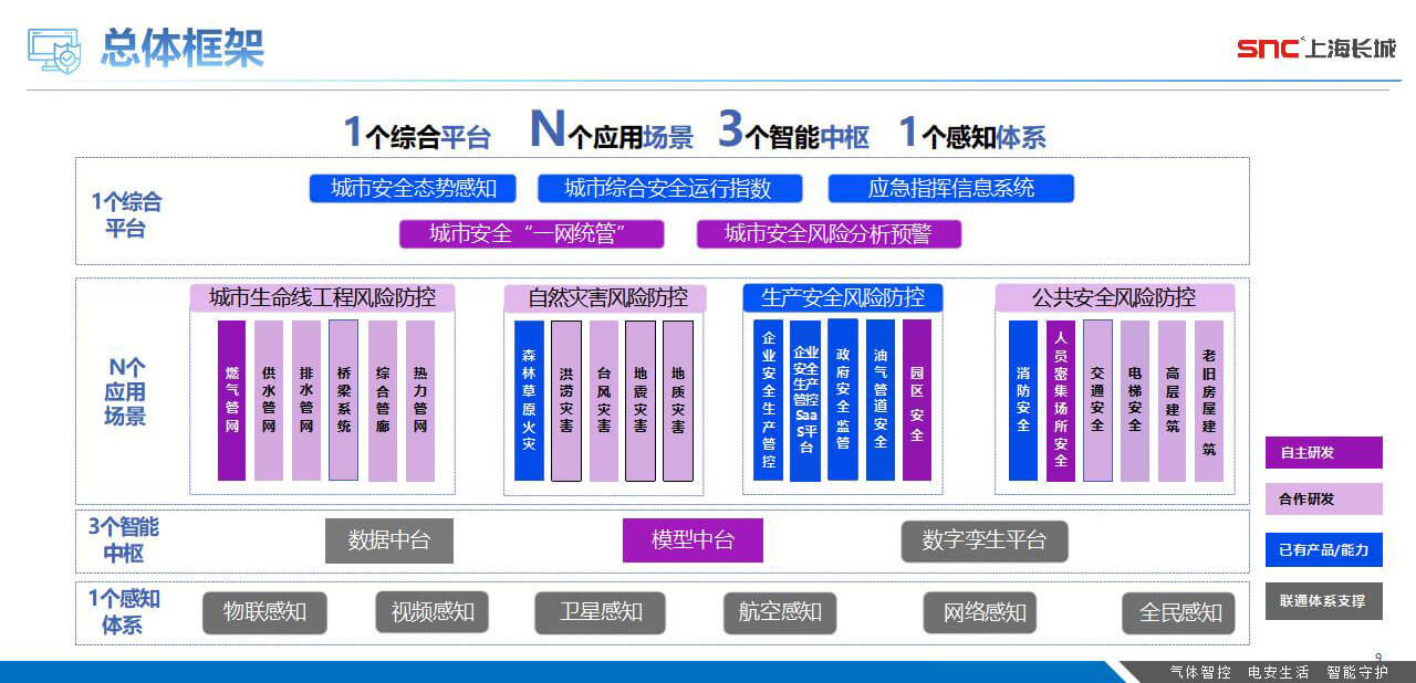 建立一套城市安全风险监测预警总体解决方案 , 以综合平台呈现城市整体运行和风险态势 , 按行业、专题维度分级分类展示重点行业风险的基础 信息、地理分布信息、实时风险态势信息等 , 形成全方位、多层级、立体化的城市风险监测预警以及多主体、大联动应急管理协同处置体系, 整体提升城市安全综合风险管控能力。